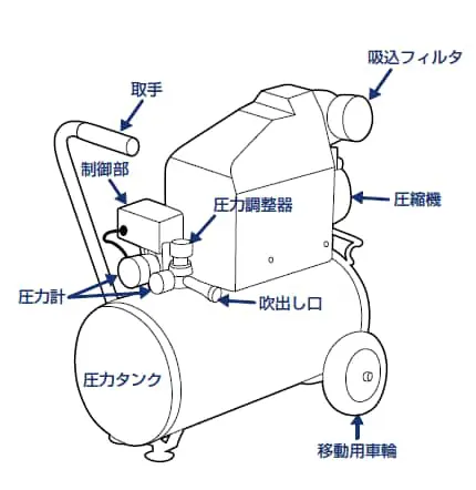 | 圧力タンク | 吸い込んだ空気を圧力をかけて貯める場所 |