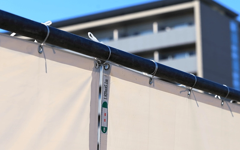 防炎シートは防炎性能だけでなく落下物の飛散を防ぐ目的で作業現場の目隠しや養生、野積みのカバー、テントの屋根部分などに使用されることが多く、