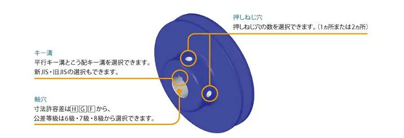 プーリーを購入する際は、軸穴とキー溝寸法が合っているよくご確認ください。