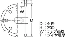 外径:105mm 穴径:M10mm 刃厚:1.8mm チップ高さ:3.0mm ねじ径:M10mm |