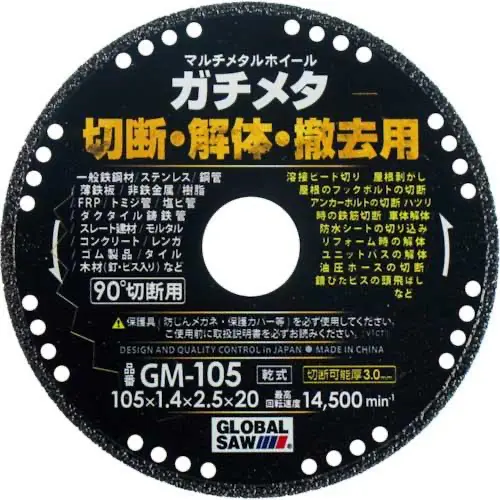 | 商品名 | モトユキ グローバルソー 万能刃 多種材切断用 金属溶着ダイヤモンドブレード BN-105 |