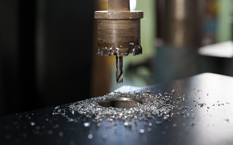 ホールソーは中心と外径のみをくりぬくので、鉄工ドリルなどと比べて時短で電力消費も押さえられ、効率よく大きな径の穴が開けられます。