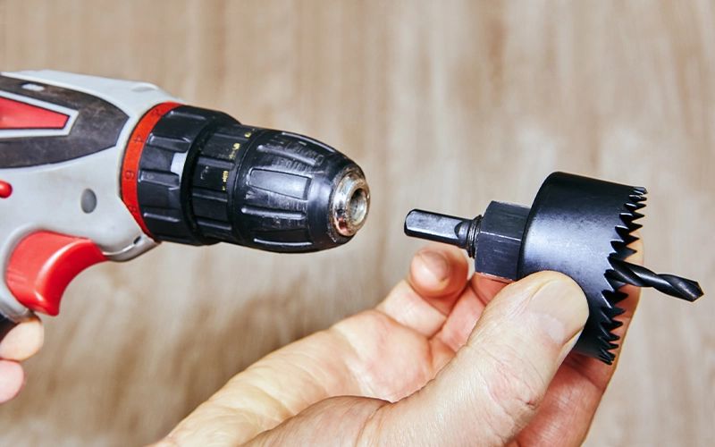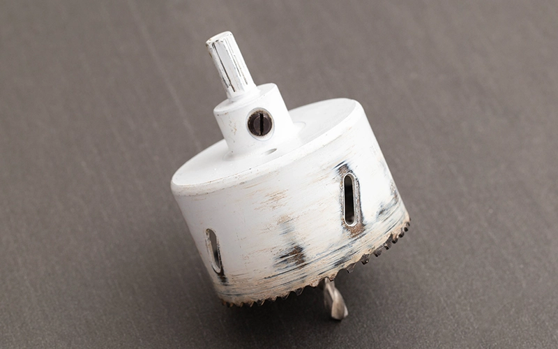 ホールソーは大きめな径の穴を開けられ、ドライバドリルなど手軽な電動工具に装着できることから広く使用されています。