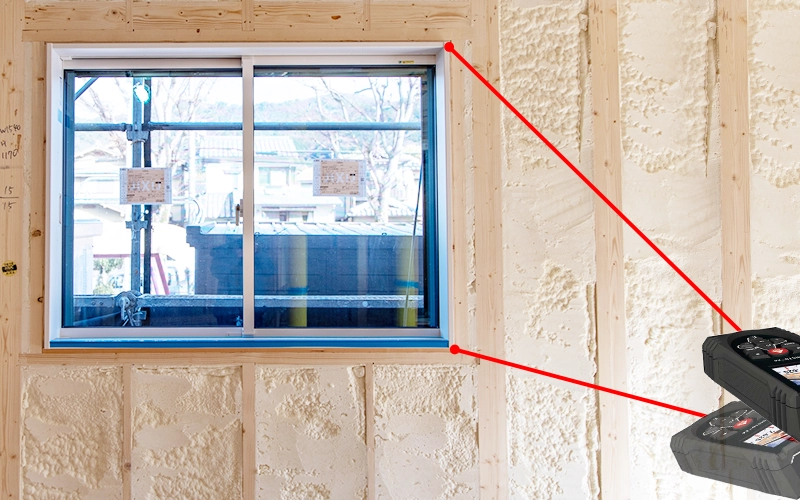 たとえば、壁についてる窓の高さや、壁の横幅、建物の高さなどがを計測する時に使用します。