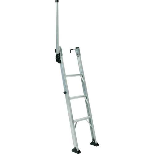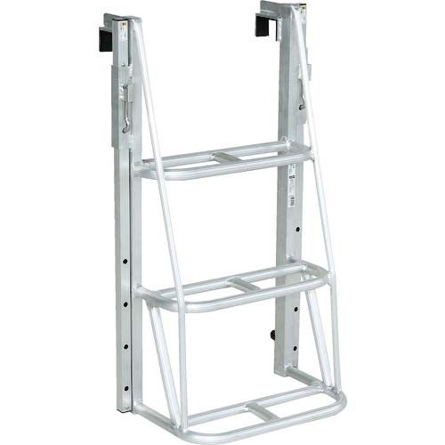 アルインコのトラックの荷役作業に特化したはしごタイプの昇降ステップです。トラックに天板を引っかけて使います。左右に手掛かり棒が付いているほか、天板が広く設計されているのが特徴です。