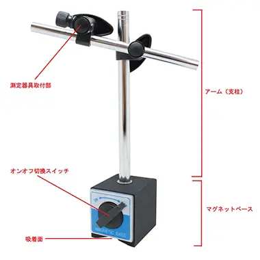 マグネットスタンドは強力な磁石を利用することで、簡単に測定器具を固定できる道具です。