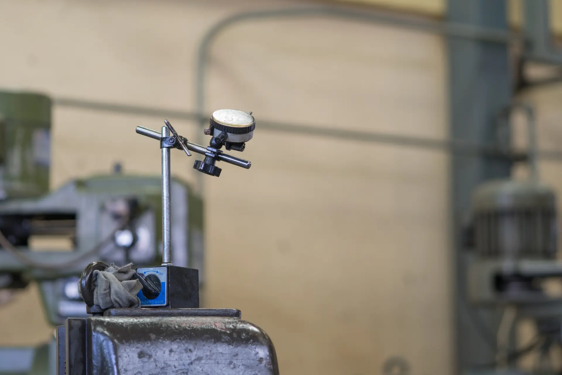 器具取付部分にダイヤルゲージなどの測定器具を装着しましょう。
