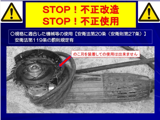● グラインダーでチップソーを使用するとキックバックが起こった時の危険性が高まる