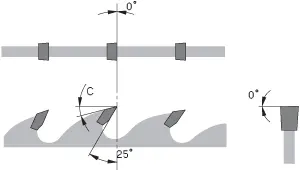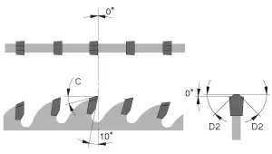 同じ向きにフラットな刃先の超硬チップソーが付けられているベーシックなタイプの刃先です。