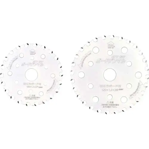 円盤型の刃に硬いチップ状の素材が付けた刃のことで、この構造により高い耐久力と切れ味をキープしながらも木材や金属等、幅広い素材の切断が可能になります。