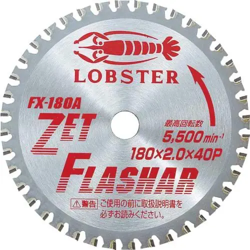 ・切断能力:鉄鋼6mm/ステンレス3mm ・外径:180mm ・刃厚: 2.0mm ・穴径: 20.0mm ・刃数:40 ・最高使用回転数:5500rpm |