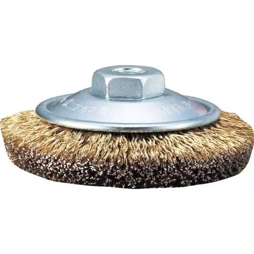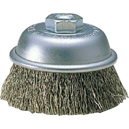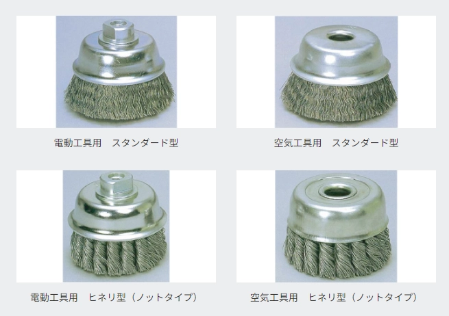 冷間引廷によって硬度を高めた鋼線を使ったカップブラシは、さび落とし・下地/仕上げ研磨・バリ取り・塗装はがしなどに使われます。