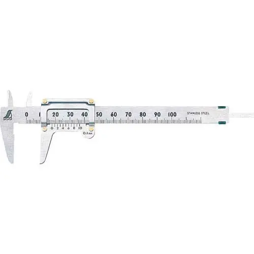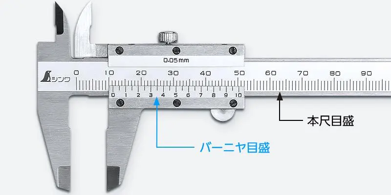 バーニア目盛りの単位は、0.1mm刻みだったり、0.05mm刻みだったりと製品によって異なるので、用途にあった目盛りのものをお選びください。