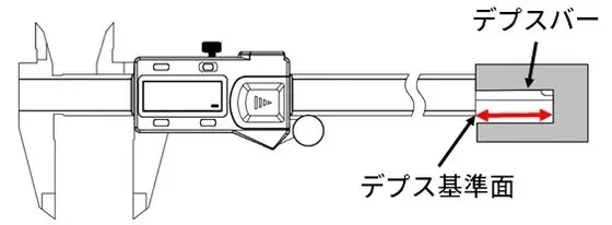 本尺の尾部分に付いた細いパーツです。溝や穴などに差し込んで、深さを測定します。