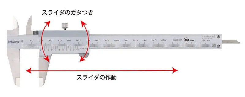 使用前にスライダー(副尺やディスプレイ、ダイヤルが付いた部分)がなめらかに動くかご確認ください。