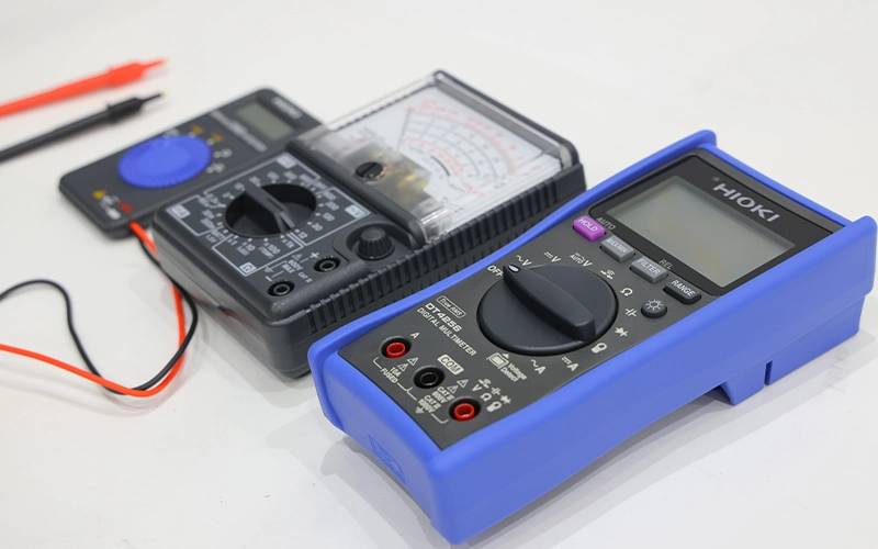 アナログの針で測定結果が表示される「アナログテスター」とデジタル数字で表示される「デジタルテスター」があります。精度の面ではデジタルテスターの方が優位ですが、急激に変化する値を測定するときには、アナログテスターが好まれる場面も少なくありません。