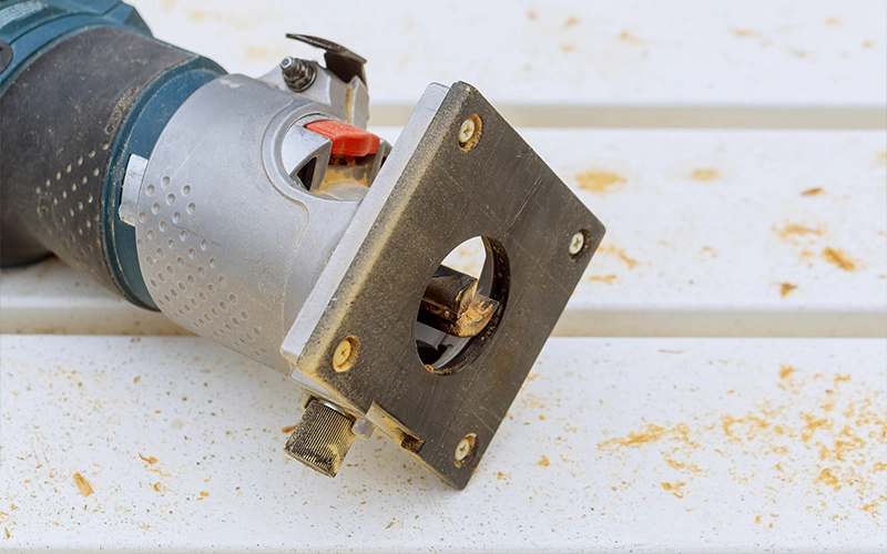 トリマーをすぐに木材へ当てるのではなく、まず空転運転を行い、回転が安定しているかを確認します。異音や振動がある場合はすぐに電源を切り、ビットの取り付けやナットの締め付けを再点検してください。