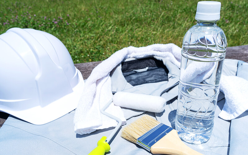 夏場は熱中症にならないよう予防したり対策したりすることが大切ですが、万が一熱中症になってしまった場合に備え、応急処置セットを準備しておくのがおすすめです。特に過酷な現場ですと、熱中症の症状が表れる頃には重篤な状態に陥っていることも。備えあれば憂いなしの心で、万が一の事故に備えましょう。