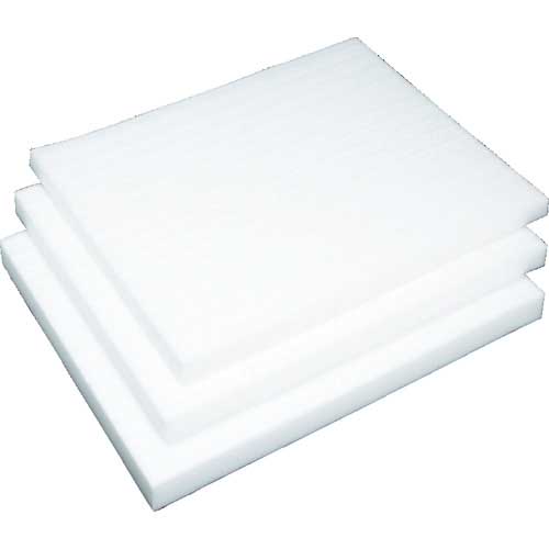 発泡ポリエチレンで作られた緩衝材です。薄いシート状になっていて内容物を包み込むものと、板状になっていて内容物同士や内容物と梱包材の間に挟んで使用するものなど、さまざまなタイプの緩衝材があります。用途や内容物のサイズを踏まえて、適した形状・サイズのものを使用してください。