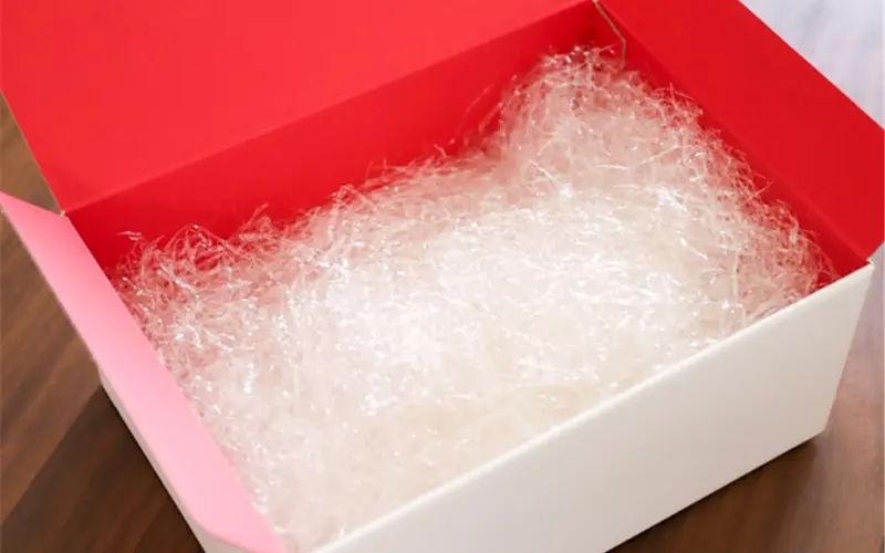 木材を薄く切って削った天然の緩衝材です。「木毛(もくもう)」やウッドウール、ウッドパッキンとも呼ばれて、商品を衝撃から守るラッピング材となっています。吸湿性と弾力性に優れているため、食品のようなデリケートなものを梱包するのにも適しています。見た目がよいため、プレゼントや贈答品などでラッピングも兼ねた梱包材としてしばしば使用されます。