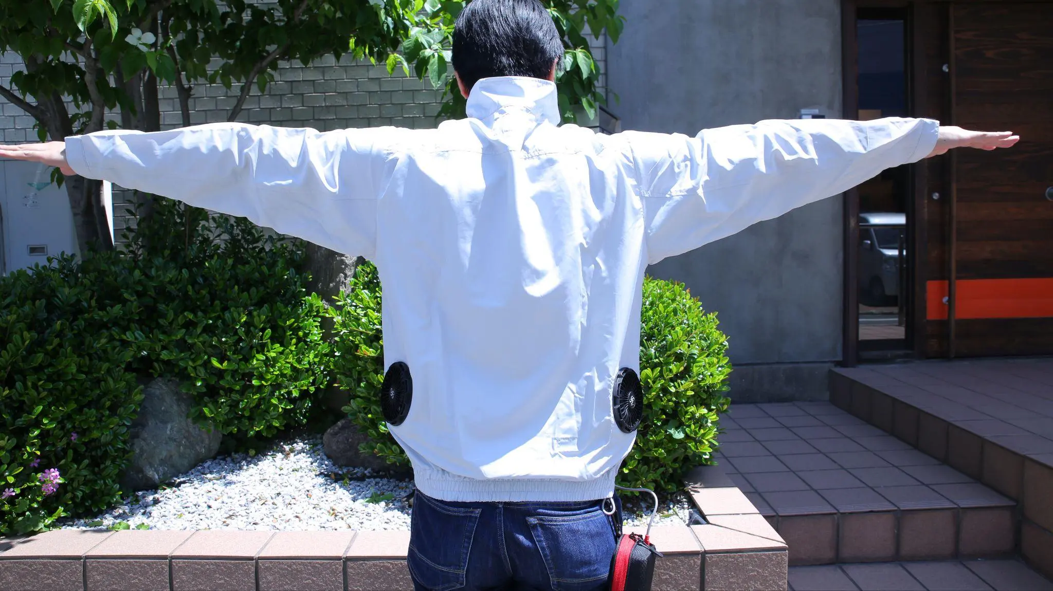 最大の特長は、空調ファンにペルチェ素子(電気で瞬時に冷却する装置)を搭載している点です。これにより、ただ風を送るだけでなく、服内を循環する空気を冷やすことができるんです!