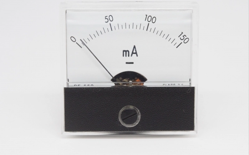 アナログ式電流計は、内部に電流を測るバネ・コイルなどの構造が組み込まれていて、電流に対して針が触れて電流の強さを示します。アナログ式は、電流測定のみに対応した機材が多いです。