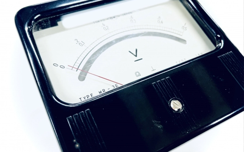 アナログ式電圧計は、基本的に電圧測定のみに使用する機材です。まず、針がゼロに位置しているかをチェックします。ゼロからずれていれば調整つまみで補正しましょう。