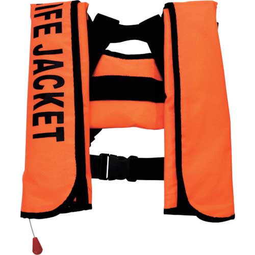 非常時に水没や洪水から身を守るための装着型安全具。普段はコンパクトに着用でき、危険を感じたときに自動または手動で膨らんで浮力を確保します。