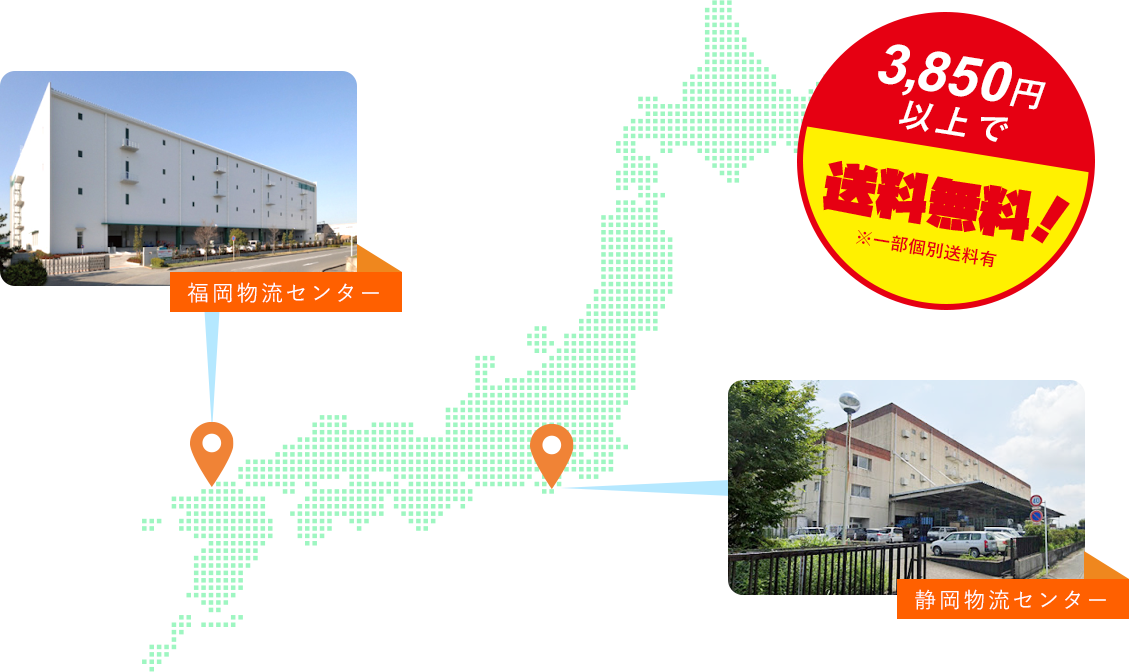 福岡・静岡のそれぞれに専用物流センターを