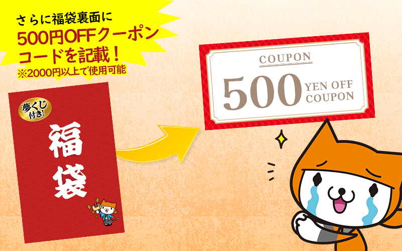 福袋限定のクーポンに2000円以上で使える500円OFFクーポンコードも書いています!