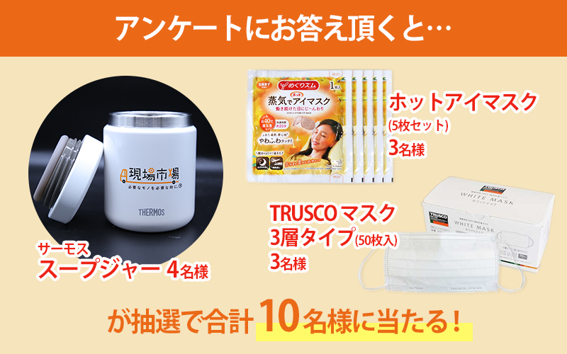 工業用品の通販なら現場市場>現場市場マガジン>【サーモススープジャー等が抽選で当たる】アンケートキャンペーン